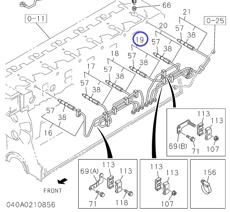 Трубка топливная №4 к форсунке для двигателя Isuzu 6WG1 Артикул: 1154164900